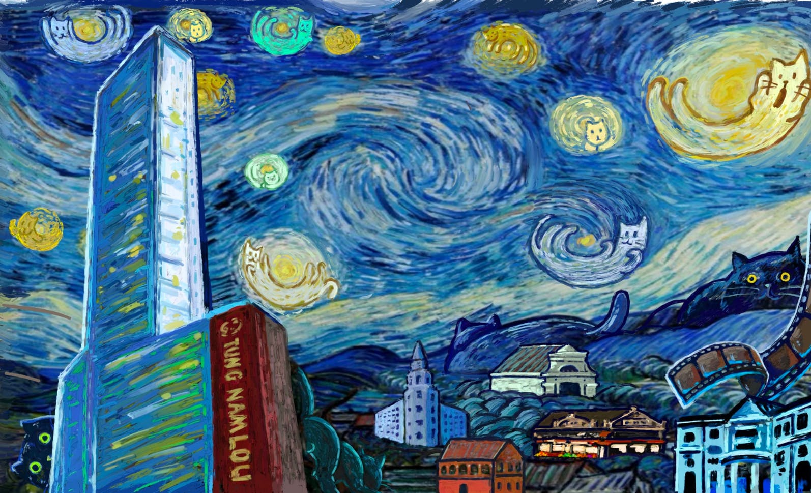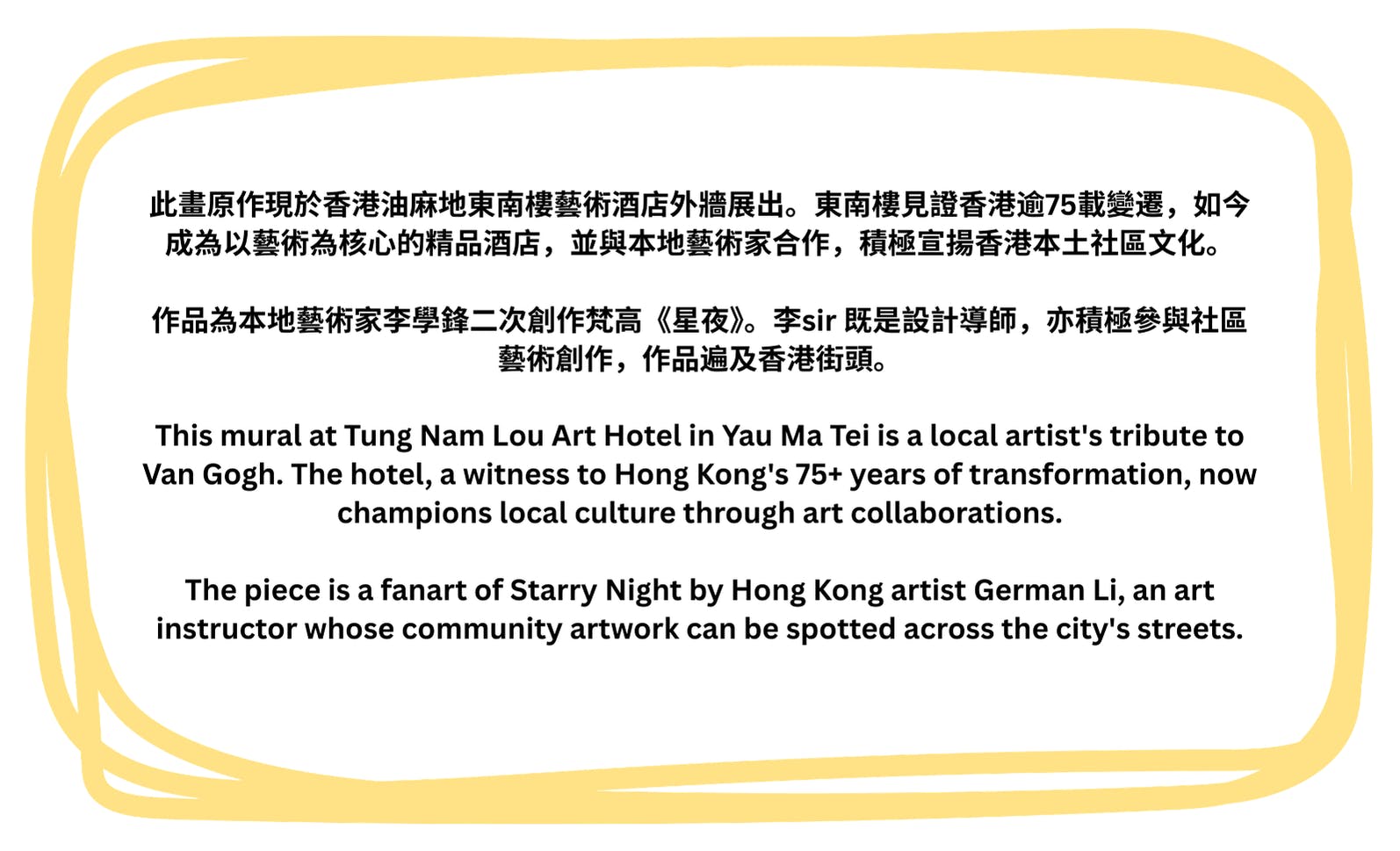 The piece is a fanart of Starry Night by Hong Kong artist German Li, an art instructor whose community artwork can be spotted across the city's streets.